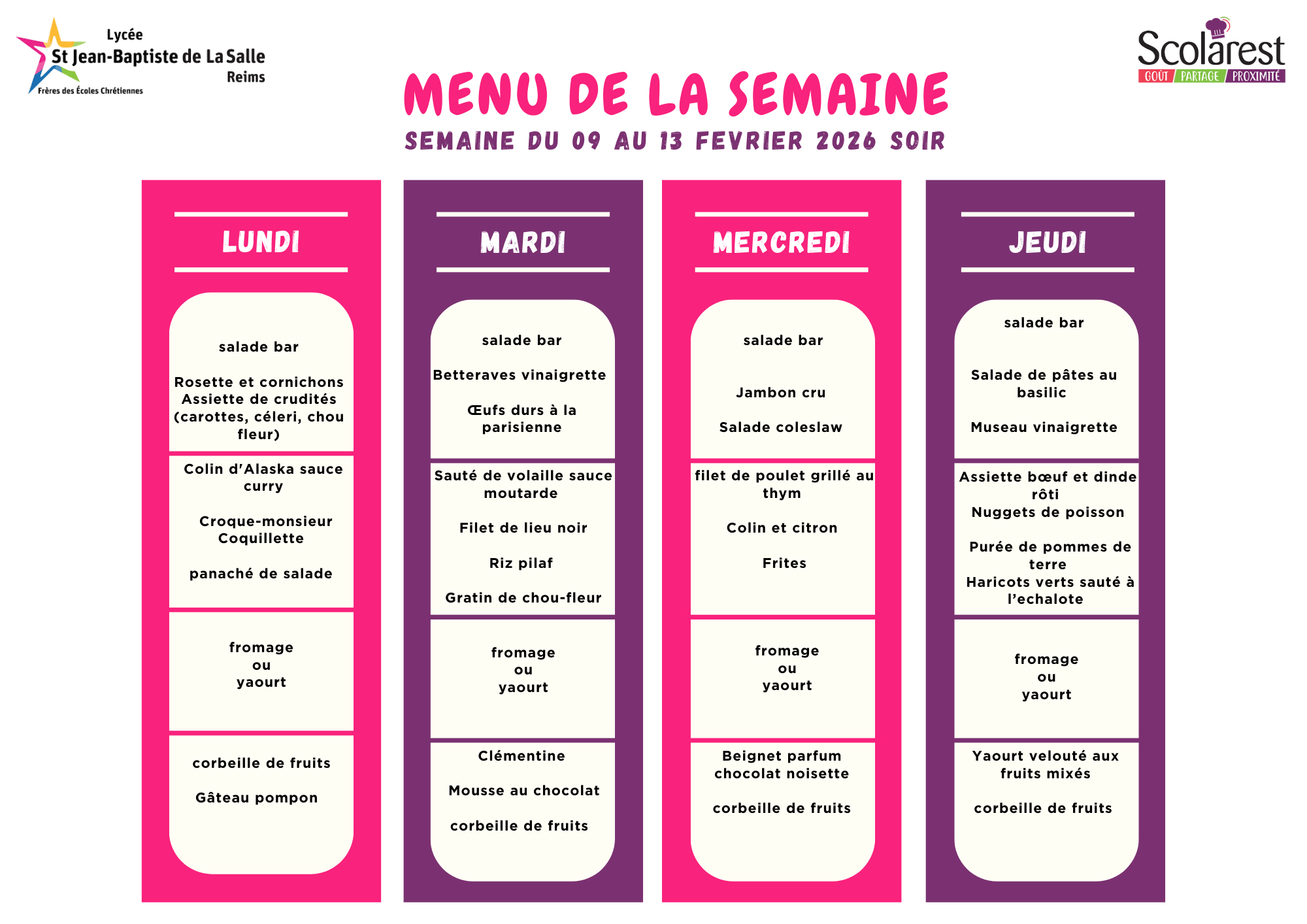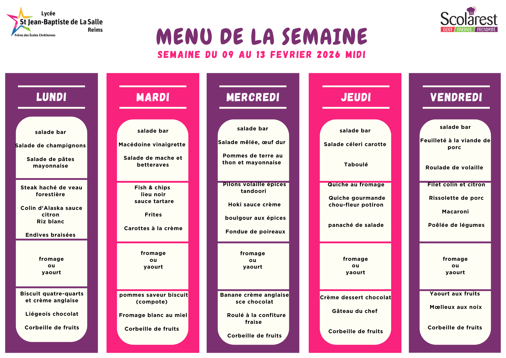 Menu du 9 au 13 février 2026